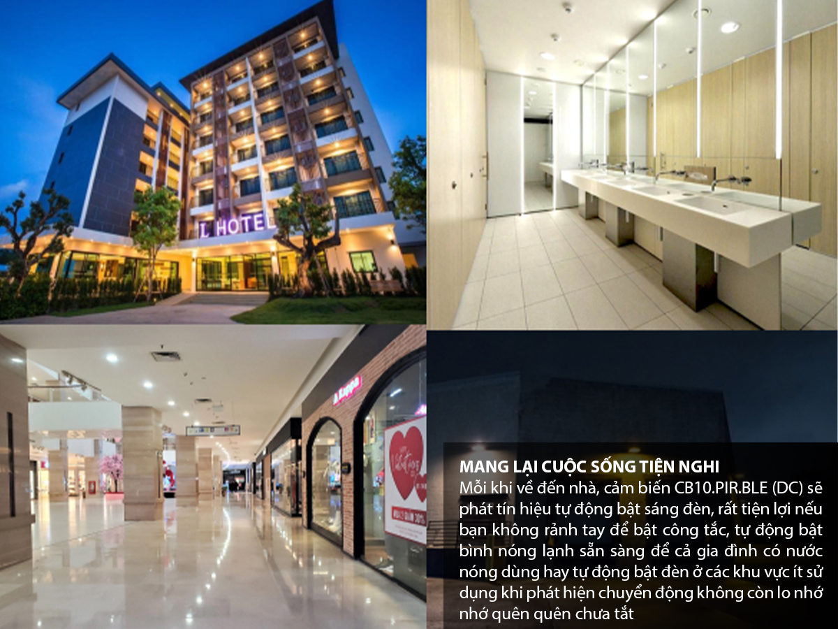 • Công tắc cảm biến chuyển động thông minh CB10.PIR.BLE  sử dụng Bluetooth Mesh cho truyền thông không dây, phát hiện chuyển động để kích hoạt đèn, thiết bị hoặc phối cảnh cài đặt trước.